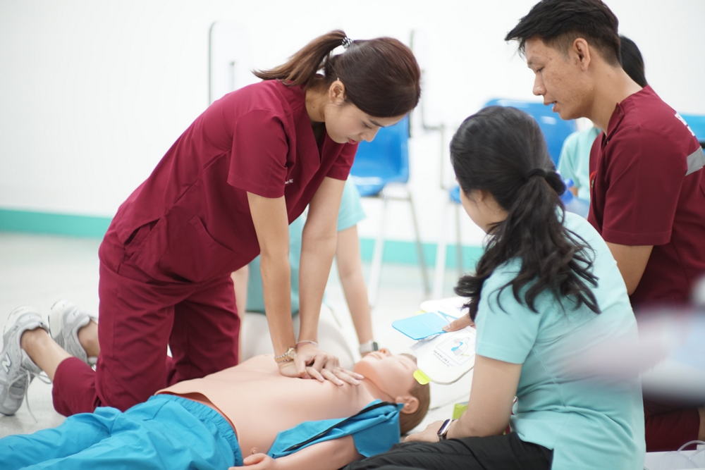 ให้การดูแลปฐมพยาบาล คัดกรองอาการ และช่วยชีวิตเบื้องต้น ณ จุดปฏิบัติงาน